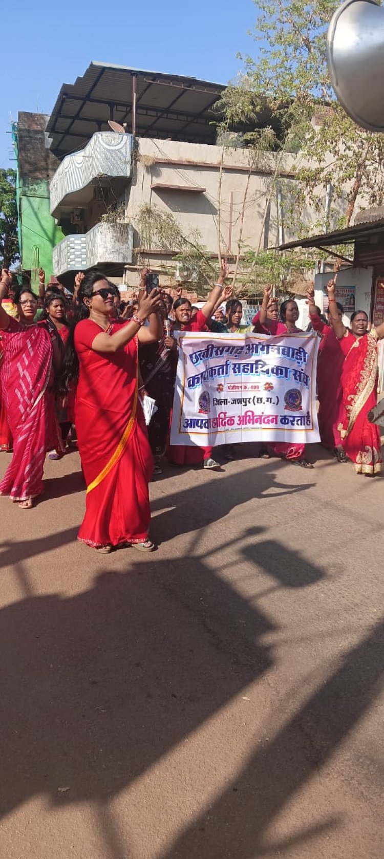 जशपुर : संयुक्त मंच के आह्वाहन पर छत्तीसगढ़ आंगनबाड़ी कार्यकर्ता सहायिका संघ पंजी.409 के बैनर तले भारी संख्या में आंगनबाड़ी कार्यकर्ताएं सहायिकाएं सड़कों में उतर गई,जिलाध्यक्ष श्रीमती कविता यादव के नेतृत्व पर जिला मुख्यालय जशपुर में कार्यकर्ताओं और सहायिकाओं की तादात इतनी ज्यादा थी कि समूचा जशपुराँचल लाल रंग में रंग गया।इस दौरान जोश खरोश के साथ जमकर नारेबाजी भी किया गया।